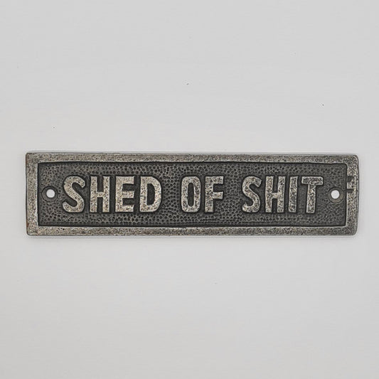 Door Sign Plaque Antique Style Cast Iron SHED OF SHIT
